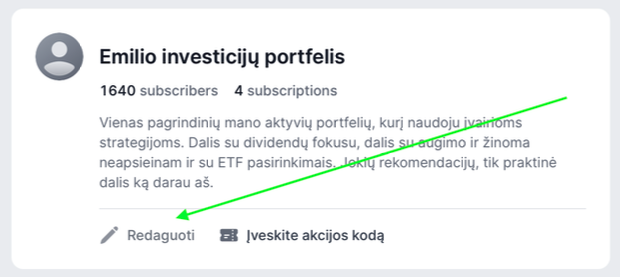 - Gauti nuorodą į viešą portfelį (pvz., iš mūsų pasidalintų aukščiau).