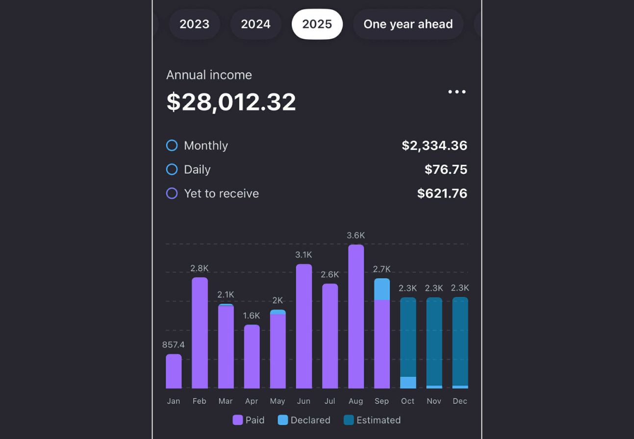Be to, mano portfelyje yra aukšto pajamingumo fondai, tokie kaip Yield Max, kurie nors ir sudaro tik 10-13% portfelio, bet generuoja apie 60% visų mano portfleio pasyvių pajamų. Tai reiškia, kad net jei šie fondai prarastų vertę, mano portfelio stabilumui tai nebūtų didelis smūgis, o išmokos džiugina.